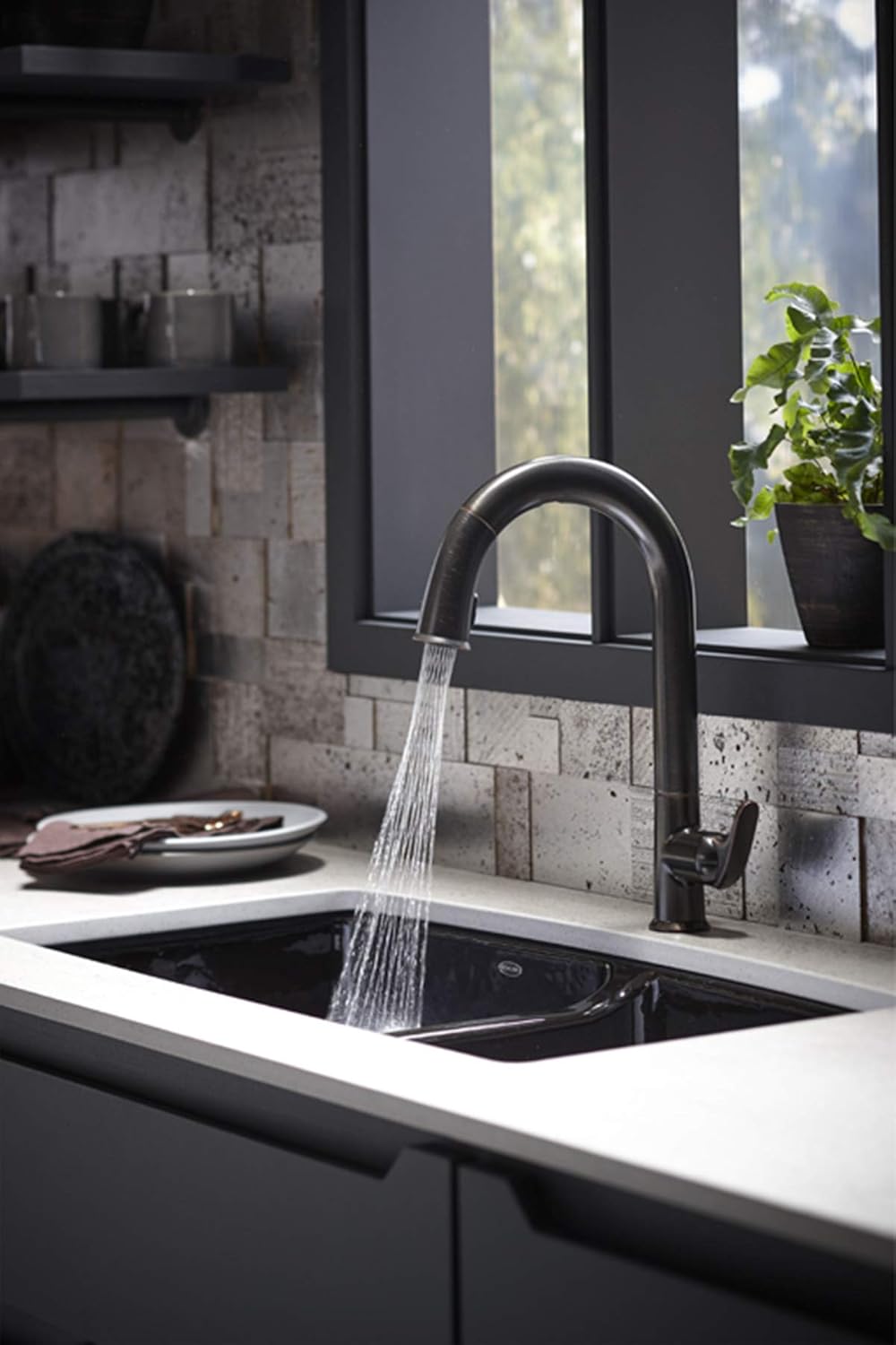 The Sensate with KOHLER Konnect faucet features two spray options for powerful cleaning performance, Response touchless technology to turn the faucet on and off with the wave of a hand and innovative pull-down and docking technologies to ensure smooth and reliable operation. Stylish versatility and performance.