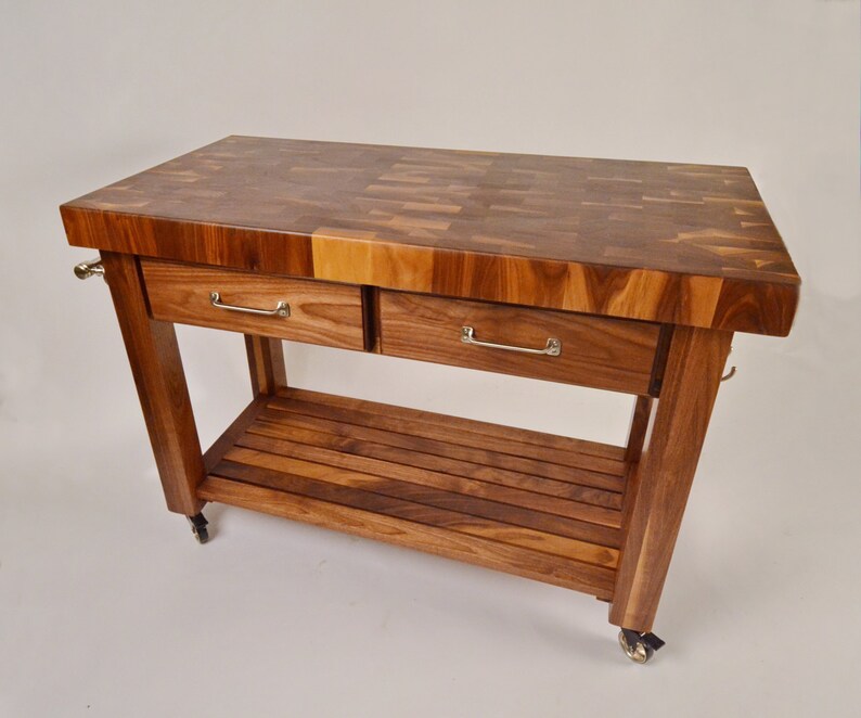 Walnut Butcher Blocks (2″ Thick) Our custom walnut butcher blocks are beautiful and truly unique down to the grain of each piece. Every butcher block we make is hand-made in the USA from the ground up to ensure state of the art craftsmanship and durability that far exceeds your store-bought boards.