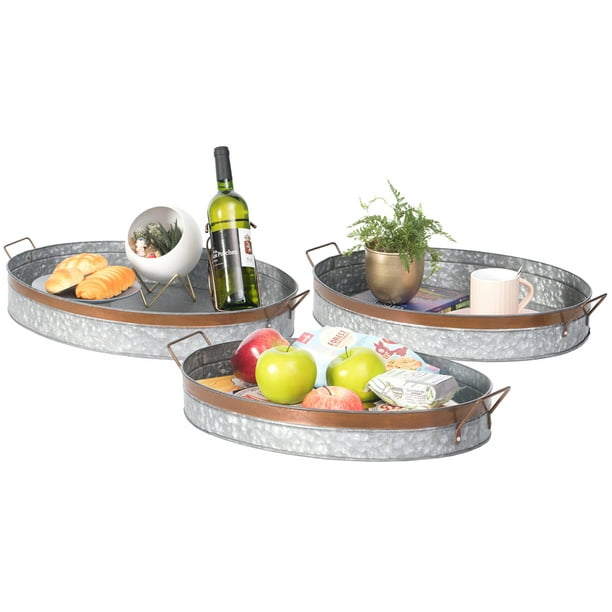 2set Galvanized Metal Serving Tray with Rust Trim and Metal Handles, Unique Butler Tray, Decorative Centerpiece for Coffee Table or Dining Table, Rustic Accessories for Weddings and Parties. 4.7 out of 5 stars 41. $23.99 $ 23. 99. Get it as soon as Wed, Jan 26. FREE Shipping on orders over $25 shipped by Amazon.