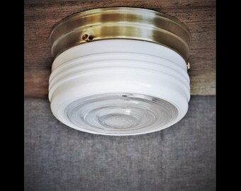 Mushroom Brass Flush Mount Ceiling Light Fixture Bathroom ... This listing is for a Mushroom Brass Flush Mount Ceiling Light Fixture Bathroom Hallway Vintage 1950s 7 1/2inch, Unionmade Sticker Marked, 1 bulb light. Vintage Light fixtures but not maker marked. Measurements~ 7 1/2 inch across the glass, 6 1/4 inch across the ceiling plate and stands 4 inches tall. The glass is fairly thick but fragile and is in good shape with no chips, …