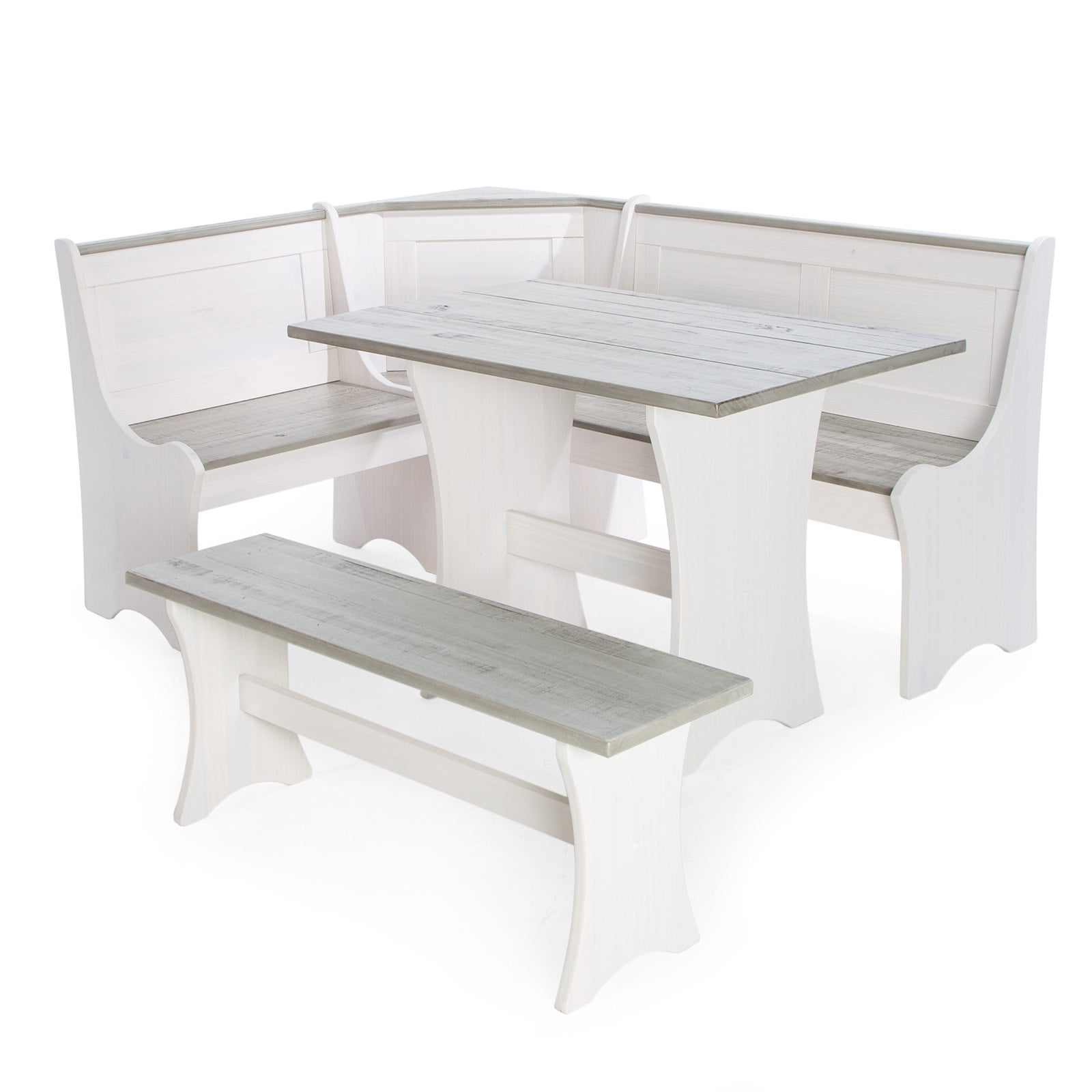 Linon Camden Coastal Corner Dining Breakfast Nook with Storage, Table and Bench, Seats 4-6, Graywash and White Finish