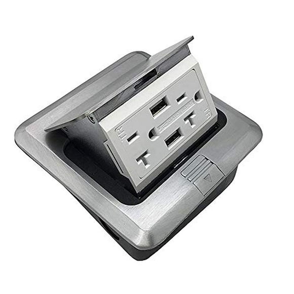 Pop Up Outlet Countertop Floor Electrical Outlet Pop Up Kitchen Countertop Waterproof Sockets Pop Out Receptacle Stainless Steel Box Black Cover 15A. TORCHSTAR Pop-up Brass Cover Electrical Floor Outlet Box, UL Listed 20A 2AC Receptacle Waterproof Outlets & 2 USB Ports Countertop Box, Damping Spring & Anti...