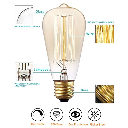 6-Pack Edison Bulb, DecorStar Edison Light Bulbs, Antique Vintage Squirrel Cage Filament Bulb, 60W, 2200K Amber Warm, 230 Lumens, 110V, E26, ST58 ...