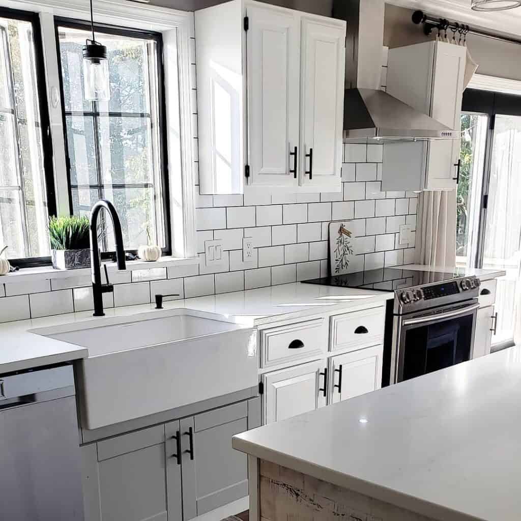 Farmhouse White Kitchen Cabinets with Black Hardware Ideas Find best inspirations about Farmhouse White Kitchen Cabinets with Black Hardware Ideas! And tips for choosing right hardwares.
