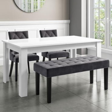 Dining Table with Bench Kitchen & Dining Room Sets This 4-person dining set brings streamlined style to your kitchen or dining area. This set includes a table and two benches. All pieces are made of engineered wood in a neutral white finish, and feature a streamlined, rectangular design. The table features a generous 53.13"L x 29.5"W top and thick, straight legs.