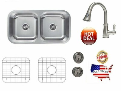 Sink Kitchen Sink & Faucet Combo Set, Stainless Steel Double Bowl Kitchen Undermount and Commercial Pull Down Kitchen Faucet Kit