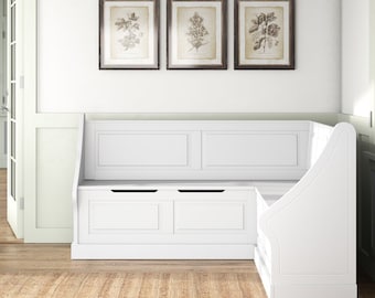 Linon Tobin Wood Corner Dining Breakfast Nook Bench with Storage, Seats 4, White Finish (Table sold separately)