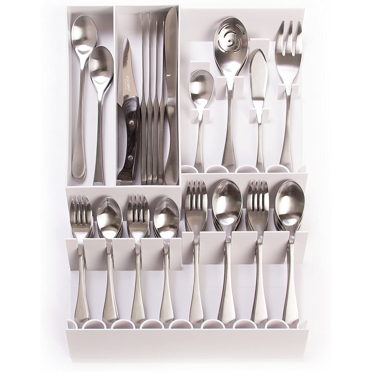 Knork Kitchen Flatware Silverware Drawer Storage Tray Organizer Solution, White - Walmart.com ...