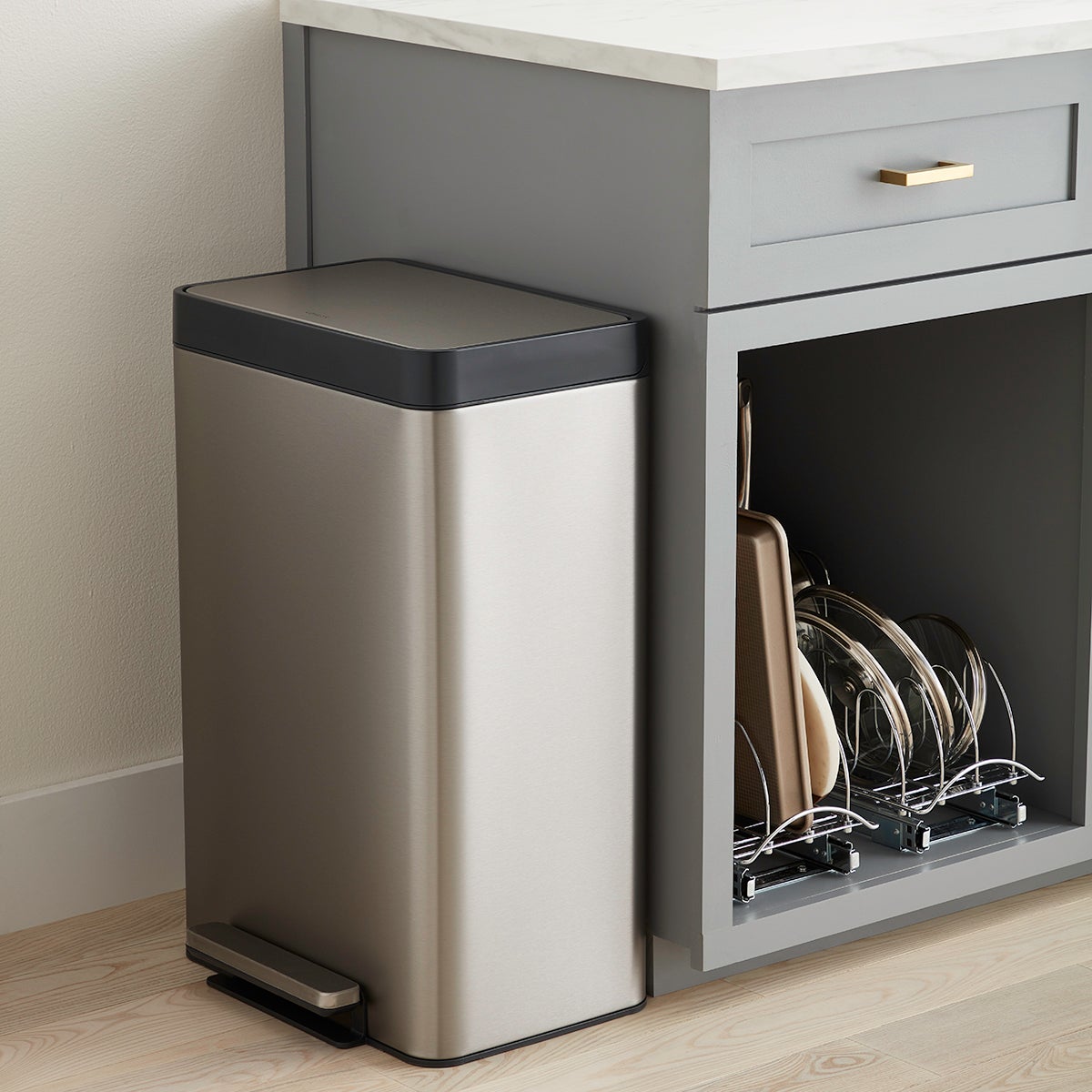 Stainless Steel Trash Cans | Costco Simplehuman 4.5L Round Step Can, 2-pack & Code A Liners, 30-pack Steel Pedal Engineered to Last 150,000 Steps; Silent Close Lid Patented Lid Shox® Technology; Removable Inner Bucket Lifts Out for Easy Trash Disposal; Fingerprint-proof Finish Resists Smudges to Keep Stainless Steel Shiny 14 Best Stainless Kitchen Trash Can On The Market - Appliances Radar Keep your home looking sleek with the Kohler 20956-BST Step Trash Can. This 11-gallon trash can comes with a dual compartment, fingerprint-resistant stainless steel finish, and quiet-close lid. The hands-free operation and easy-to-use features make this trash can a must-have for any home. Best durable: Amazon Basics C-10074FM-50L simplehuman Rectangular Dual Compartment Recycling Kitchen Step Trash ... This item: simplehuman Rectangular Dual Compartment Recycling Kitchen Step Trash Can, 46 Liter, Brushed Stainless Steel $179.99 $ 179 . 99 Get it as soon as Wednesday, Oct 5 Stainless Steel - Trash Cans - Trash & Recycling - The Home Depot All Stainless Steel Step-On Large Metal Kitchen Trash Can with Clorox Odor Protection and Soft-Closing Lid. Model# GLD-74526 (4) $ 139 99. KOHLER 13 Gal. Stainless Steel Step Trash Can. ... iTouchless 13 Gal. and 1.32 Gallon SoftStep Stainless Steel Step Trash Can Combo Set for Kitchen and Bathroom, Removable Bucket. Model# CPC1305SS (13)