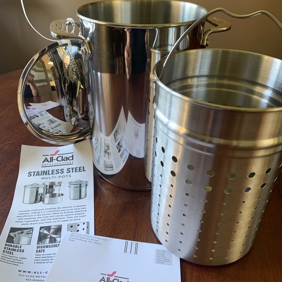 Amazon.com: All-Clad E9078064 Stainless Steel Multicooker with ... 3. Apr. 2016 · All-Clad E9078064 Stainless Steel Multicooker with Perforated Steel Insert and Steamer Basket, 8-Quart, Silver All-Clad's Stainless Steel Multi-Pots offer exceptional versatility. The large pot works well for canning, blanching, or making large batches of soups and stews, while the perforated inserts allow for convenient preparation of homemade stocks or pasta, or …