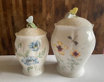 Butterfly Meadow 3-Piece Canister Set - Lenox Corporation A lively motif of butterflies, bees and flowers adorns the white porcelain surface of this Butterfly Meadow 3-piece canister set. These durable porcelain containers each feature a butterfly finial and are ideal for storing dry ingredients. ... Lenox Will Match All Donations To Trenton Area Soup Kitchen Learn More. Win Over $2,000 In Prizes ...