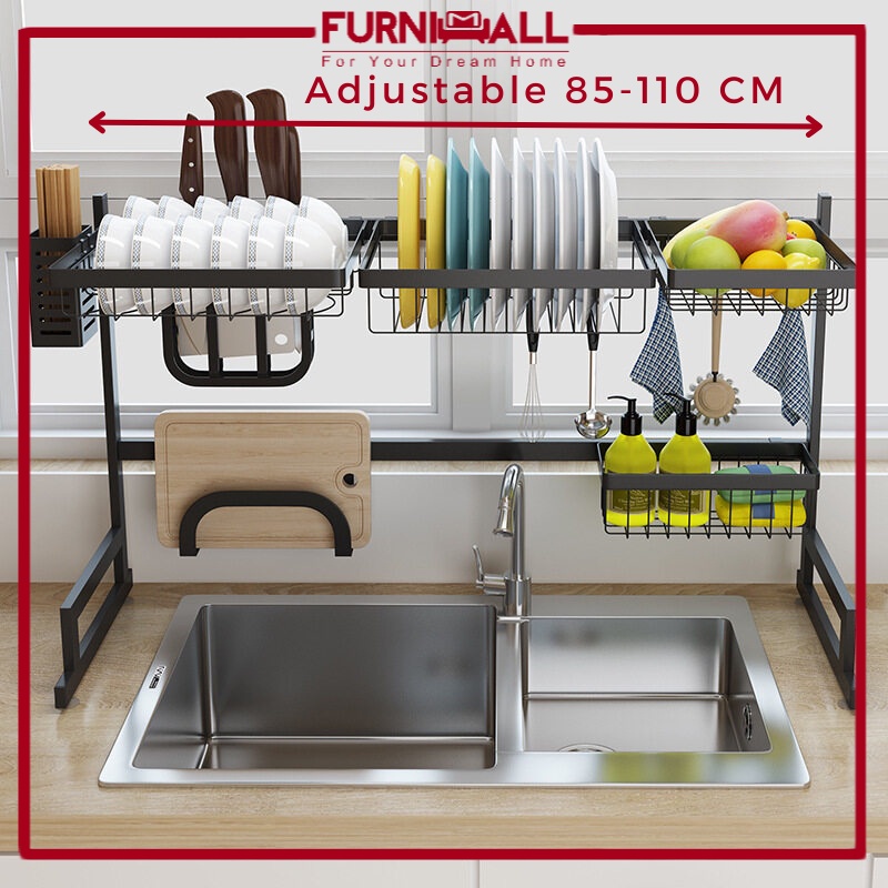 Furnimall Adjustable Sink Rack 85cm-110cm Stainless Steel Kitchen Rack Rak Pinggan Mangkuk Rak Sinki