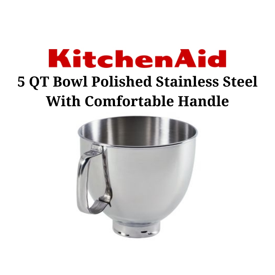 KitchenAid 5-Quart Polished Stainless Steel Bowl w/Handle | Fits 4.5-Quart & 5-Quart KitchenAid Tilt-Head Stand Mixers