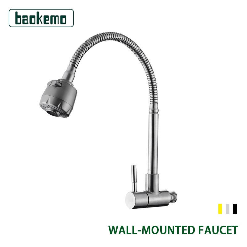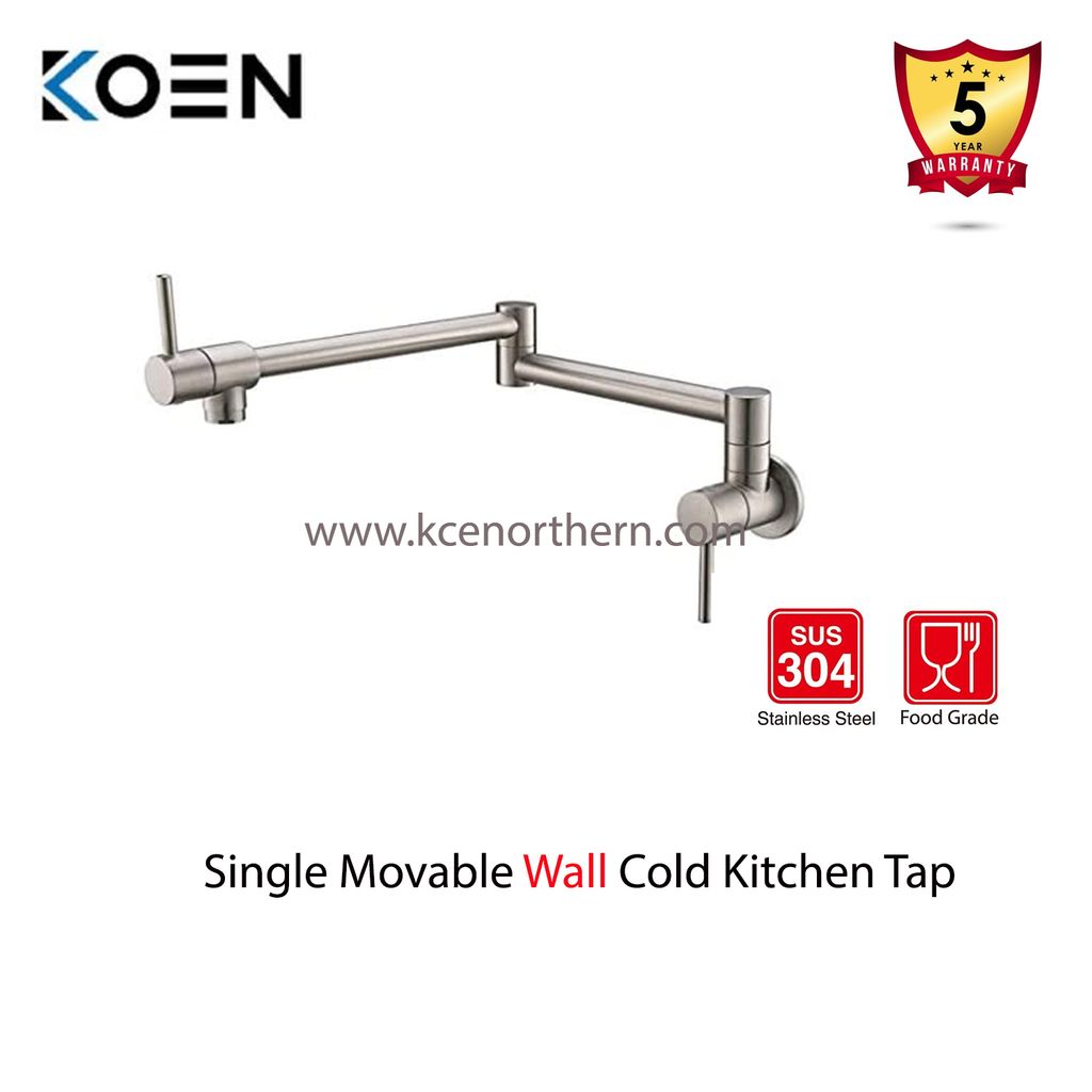 KOEN KN-SS38482W Kitchen Faucet SUS 304 Stainless Steel Single Handle 360° Swivel Wall Mounted Sink Tap