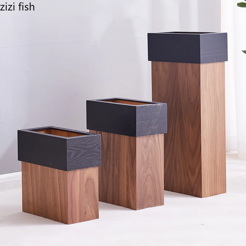 Chinese Home Solid Wood Square Trash Can Wastebasket Garbage Storage Basket Waste Bins Kitchen Garbage Can Wooden Storage Bucket