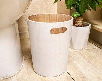 Function Home Cottage Trash Can ,13 Gallon Wood Trash Bin ,Country Style Garbage Can ,Recycle Bin for Home Kitchen in White