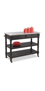 Homestyles Kitchen Cart with Stainless Steel Metal Top, Rolling Mobile Kitchen Island with Storage and Towel Rack, 54 Inch Width, Black